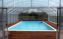 metre by 6 metre, outdoor, covered and heated swimming pool with terrace,